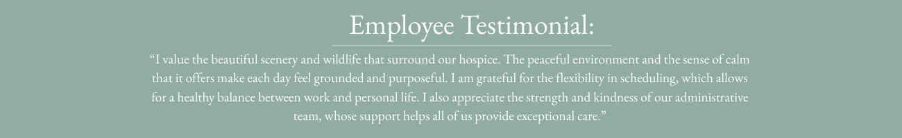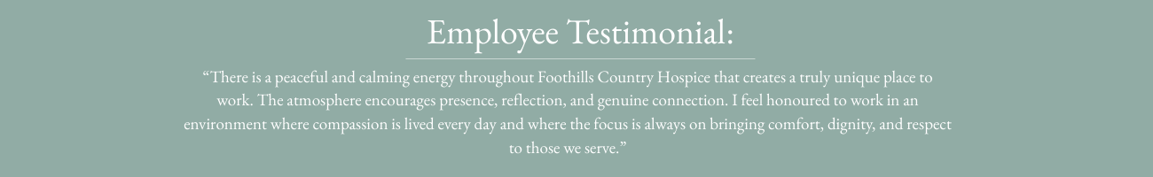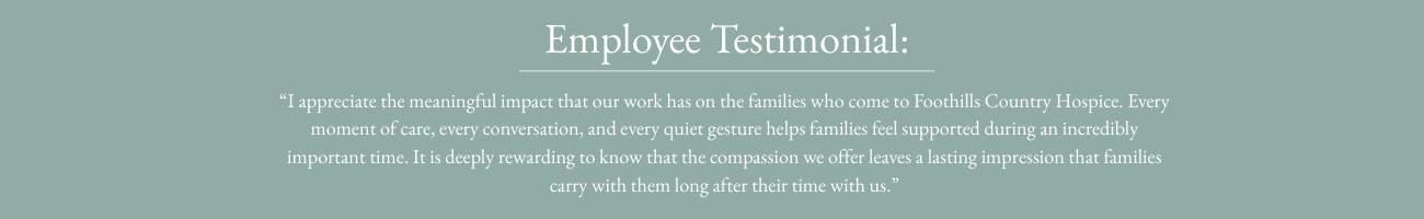 When you join Foothills Country Hospice, you join a place where your work is meaningful and where compassionate care is at the heart of every day.